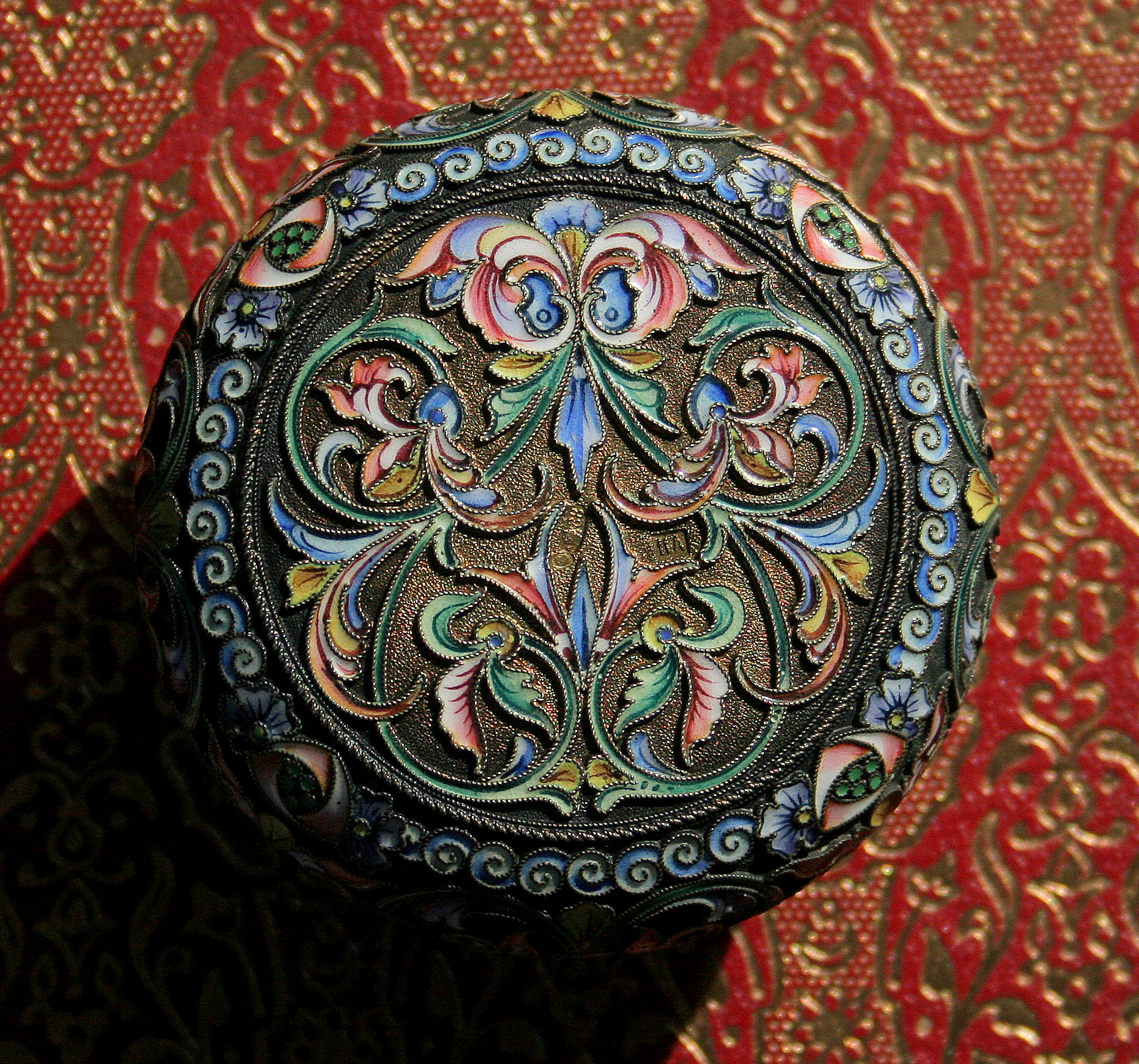 The back is intricate and not-so-clearly hallmarked in three places. The inside of the lid is marked in three places, also. I knew nothing about Russian silver hallmarks, but I went online to learn. And I learned. I learned a lot. Again, fascinating.